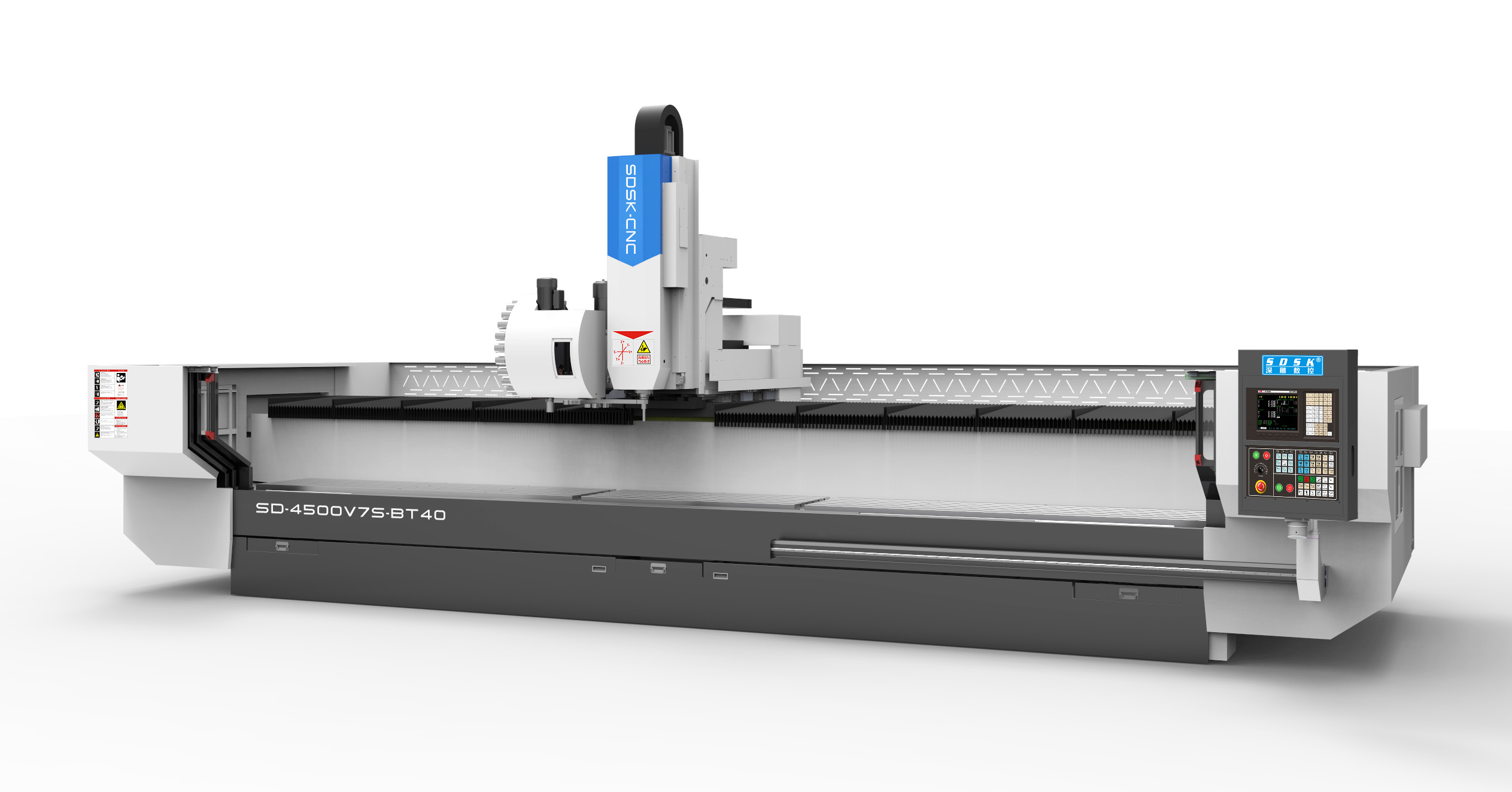 1、SD4560V7S-BT40機(jī)型系列是專門為客戶量身定做的大型型材加工中心; 天軌式結(jié)構(gòu);三軸運(yùn)動(dòng)機(jī)構(gòu)設(shè)計(jì)在橫梁頂部輕巧便捷也方便清理Y機(jī)頭前后移動(dòng),X軸機(jī)頭左右移動(dòng)Z軸主軸上下移動(dòng)